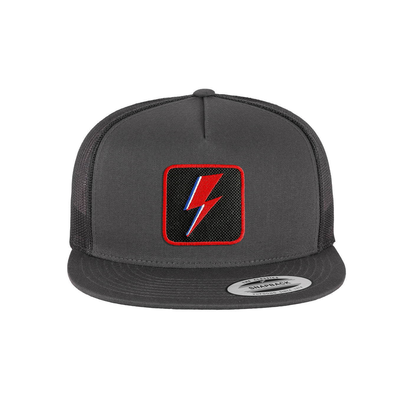 Bowie Flash Trucker Hat Embroidered Patch Music Snapback Trucker Hat Black, White, Grey