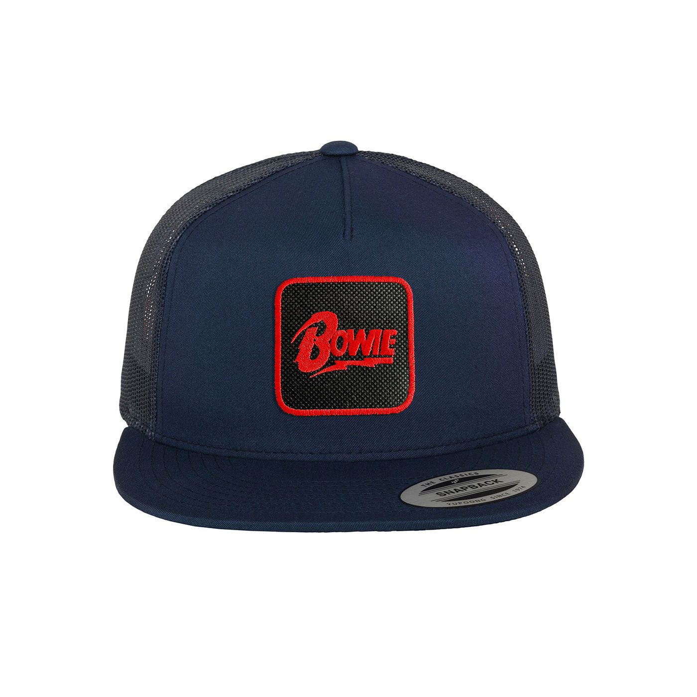 Introducing the Bowie Trucker Hat with an embroidered patch, available in black, white, grey. Perfect for music...