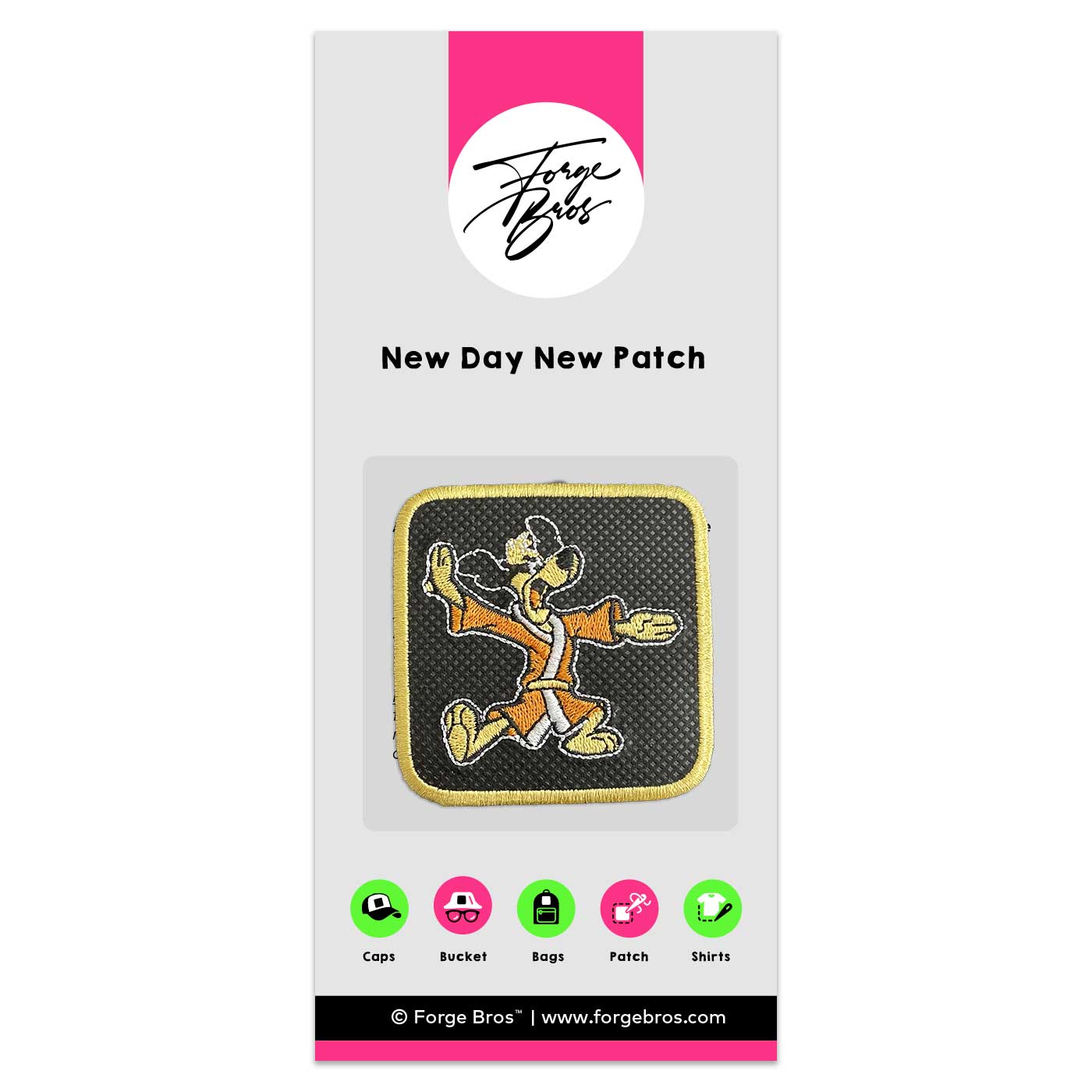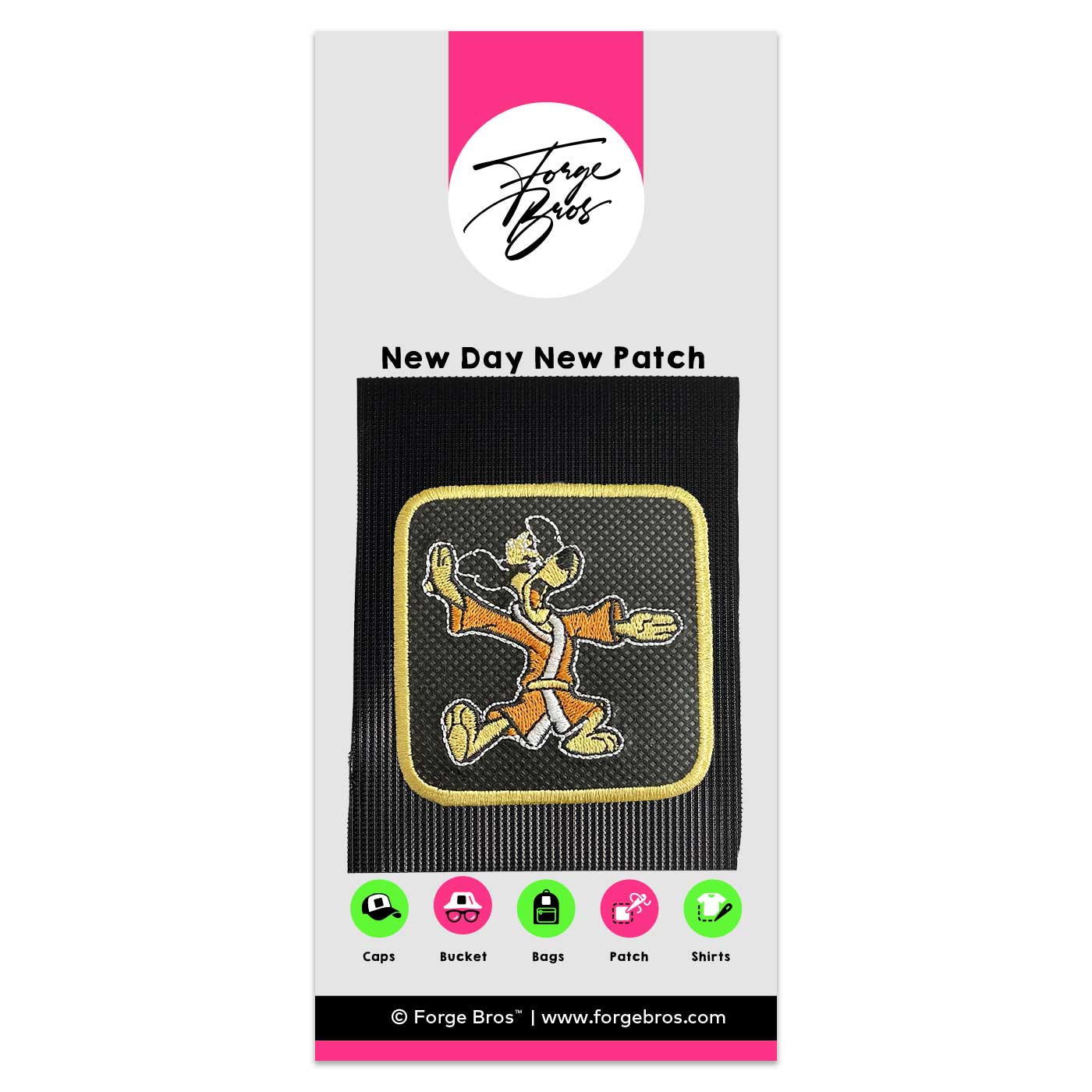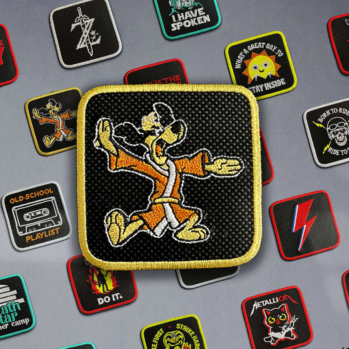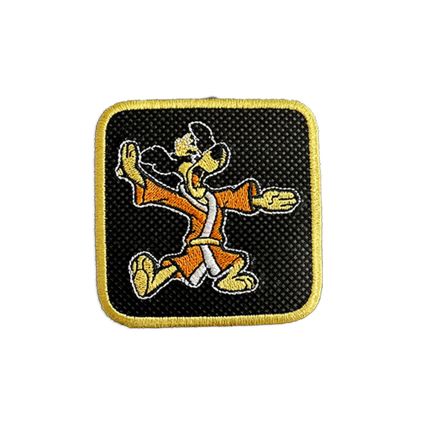 The embroidered patch is crafted on a soft Loop side measuring 6.5 x 6.5 cm, offering high-quality embroidery and vibrant detail.