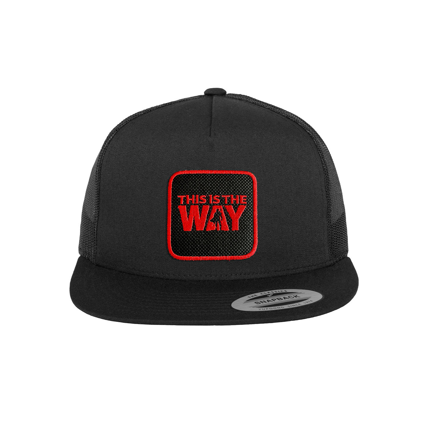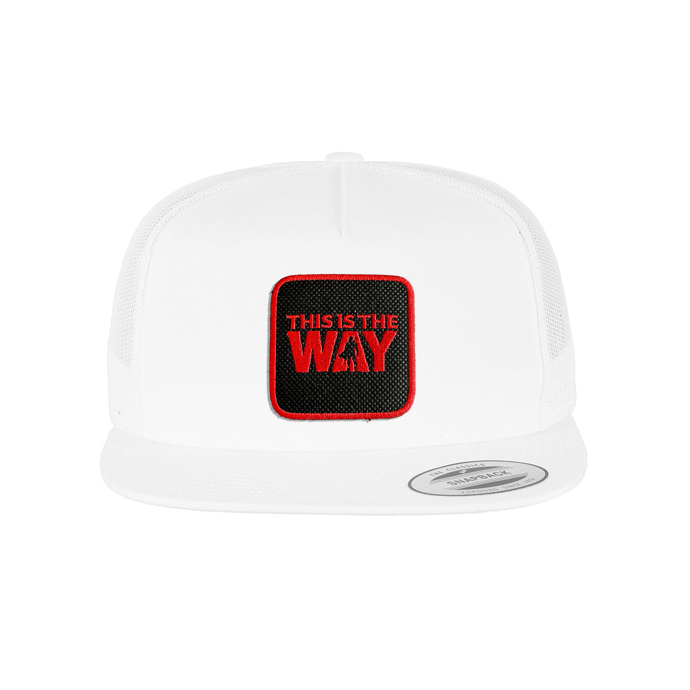 Introducing the Mando Trucker Hat with an embroidered patch, available in black, white, grey. Perfect for movie lovers, this cap allows for easy customization and adds a touch of vintage flair to any outfit. Embrace nostalgia with this stylish and versatile accessory.