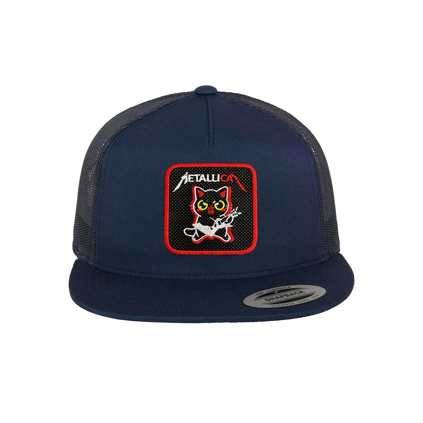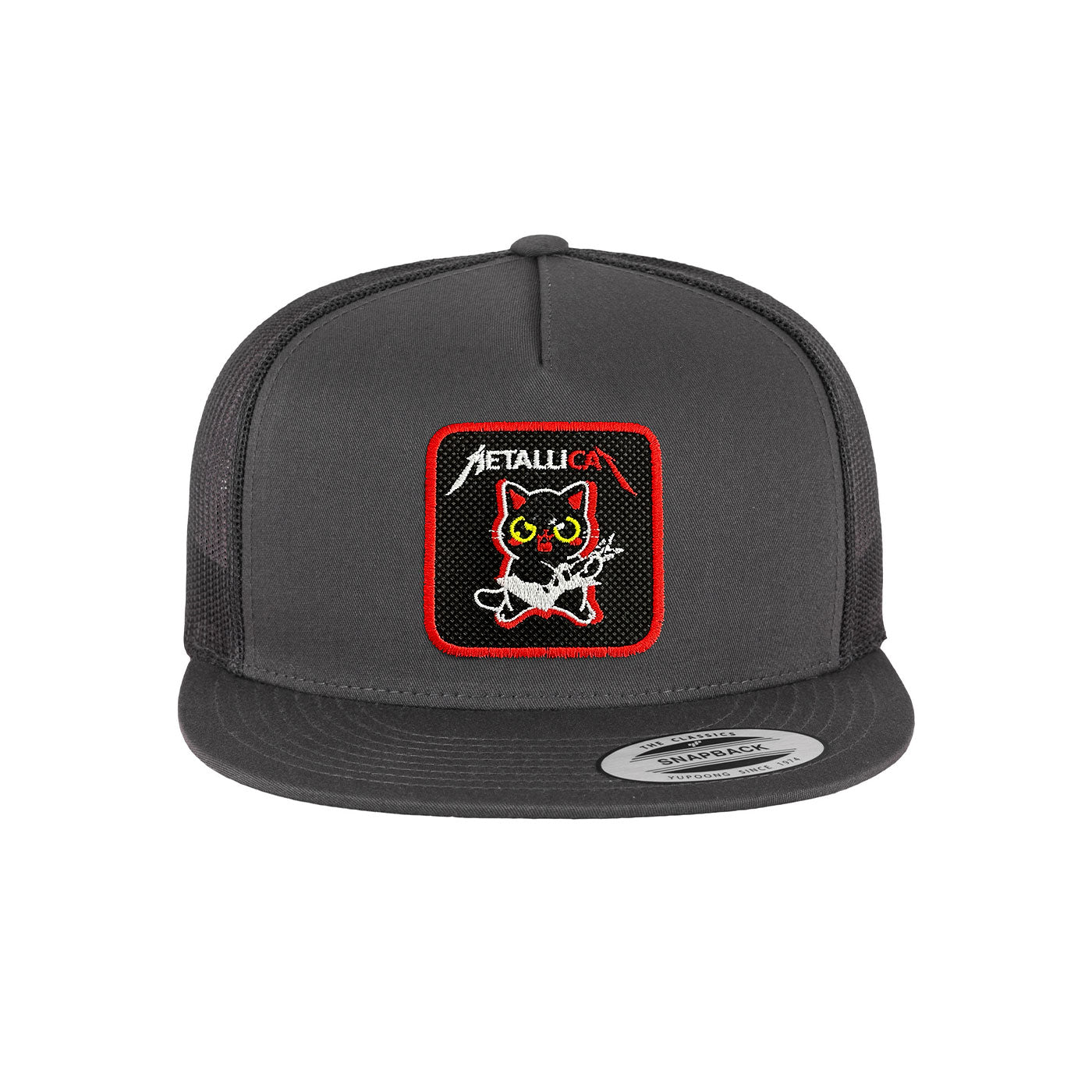 Introducing the Metalicat Trucker Hat with an embroidered patch, available in black, white, grey. Perfect for music...