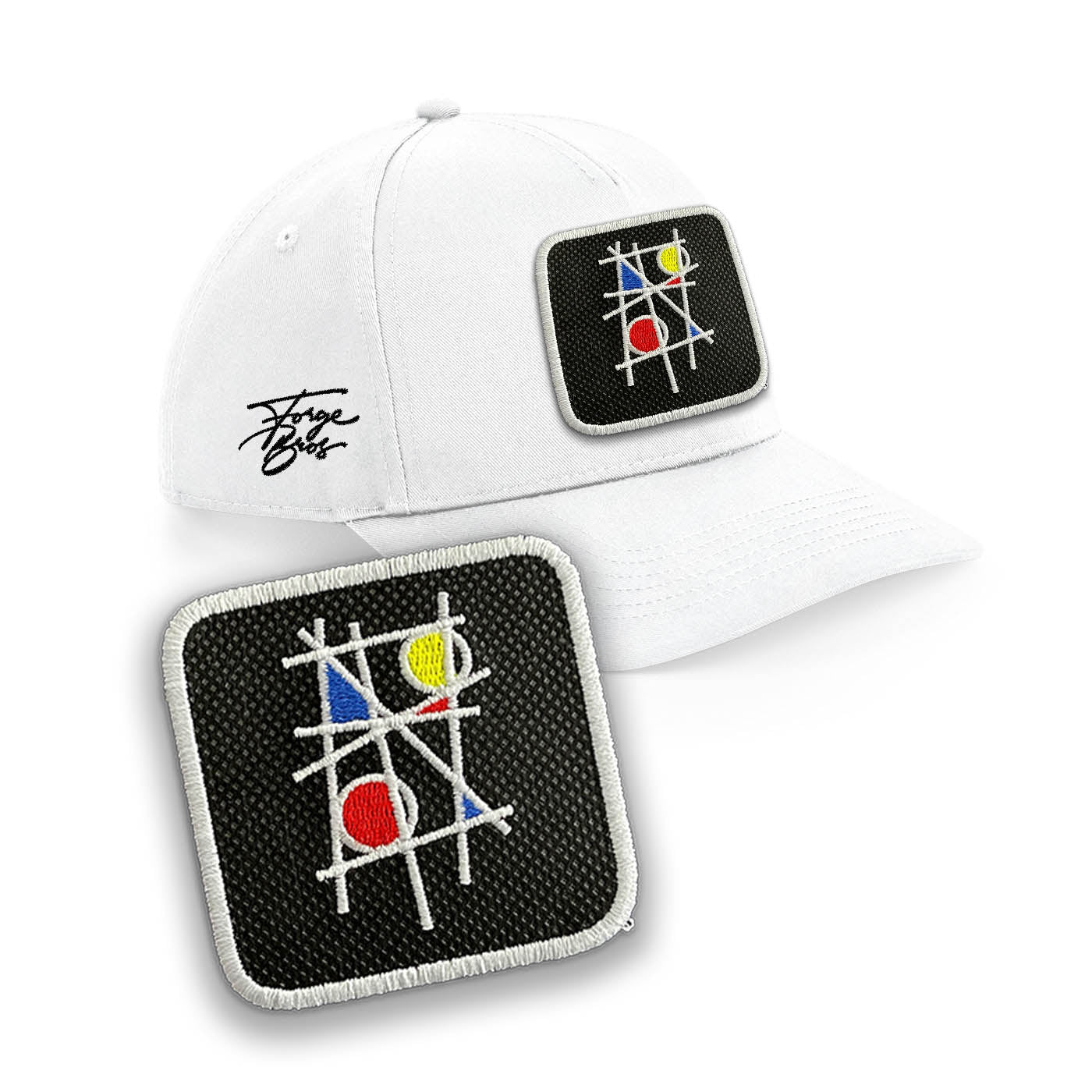 Mondrian Art Cap Embroidered Velcro Patch Hat Arty Black, White, Grey - Forge Bros