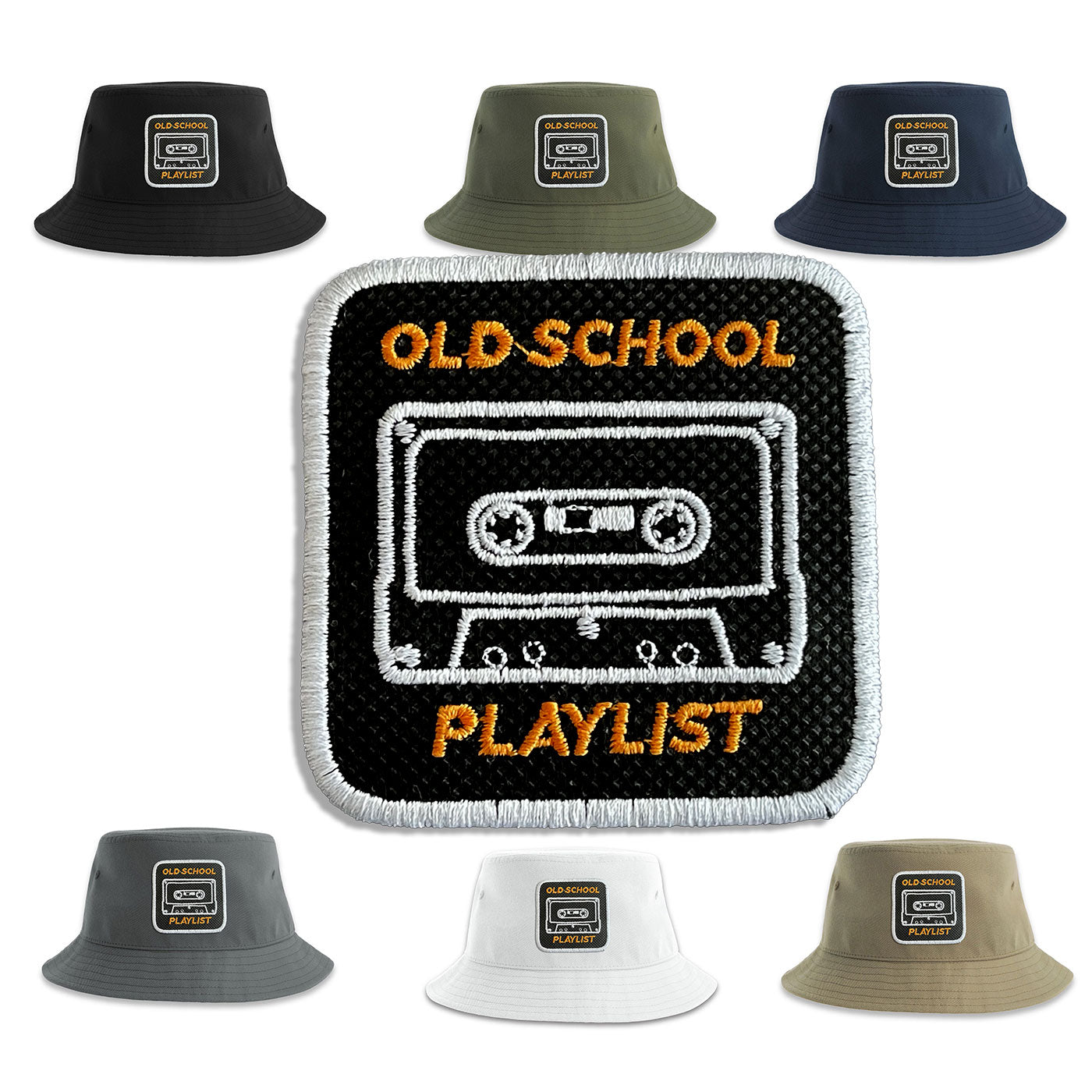 Introducing the Old School Playlist Bucket Hat with an embroidered patch, available in black, white, and grey. Perfect for music lovers. Embrace nostalgia with this stylish and versatile accessory.
