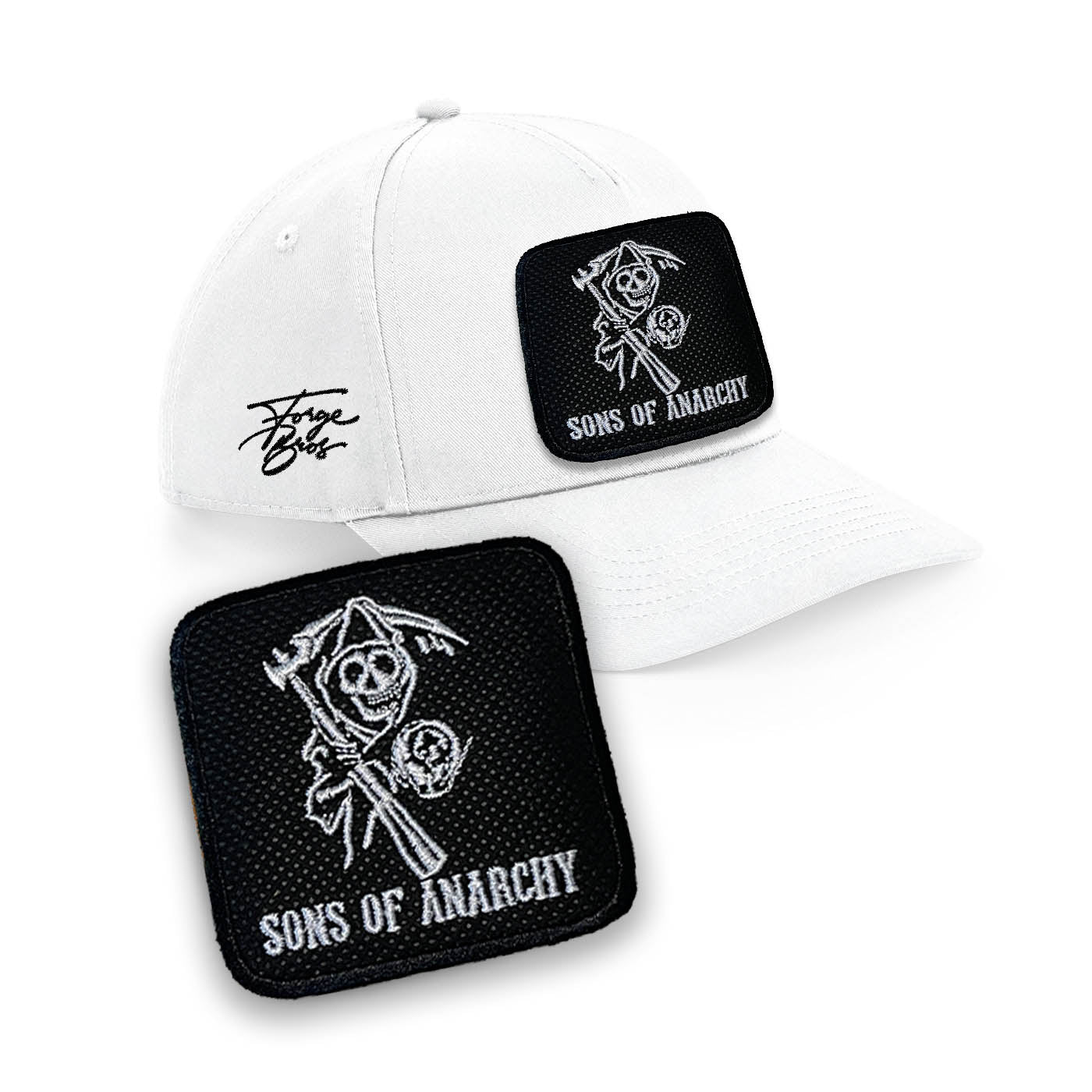 Pay tribute to SAMCRO with this SAMCRO Embroidered Patch Baseball Cap by Forge Bros. Perfect for both men and women, this adjustable hat features a striking SAMCRO logo patch and offers a seamless blend of fashion and comfort.